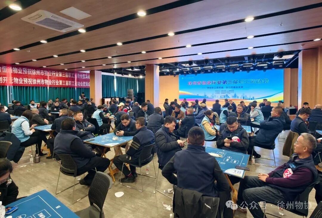 11月20日至21日,在徐州市职工文体服务联盟的指导下,由徐州市物业管理行业协会主办、徐州市工人文化宫协办的徐州市物业行业第三届职工运动会成功举办。来自全市近20家物业企业的近300名从业者,分赴两大赛场,在掼蛋、跳绳、拔河三项赛事中同台竞技、友好交流。活动充分展现了广大职工昂扬向上的精神风貌,并以体育为桥梁,促进了品牌物业企业与本土企业之间的深度互动,为徐州物业行业的高质量发展注入了崭新活力。